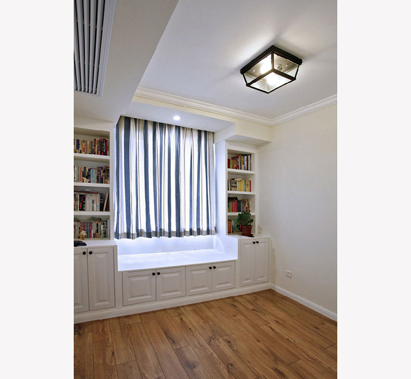 小編的話:在飄窗兩側的墻壁上做一套嵌入式書架,大大提高了空間利用率,也省下了書房內部的空間。