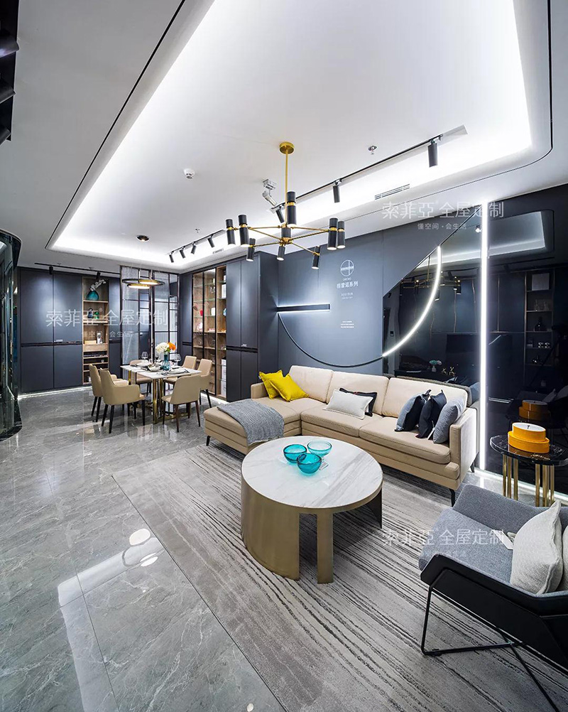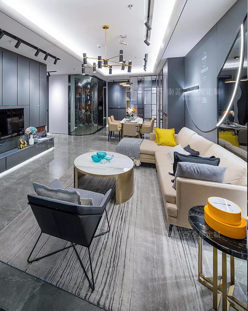 金屬色是輕奢風客廳里的常見元素,作為點綴色,它在客廳里的分量很少,但也是不可或缺的存在。