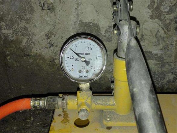 測壓時,搖動千斤頂的壓桿直到壓力表的指針指向0.9-1.0左右,也就是說現在的壓力是正常水壓的3倍