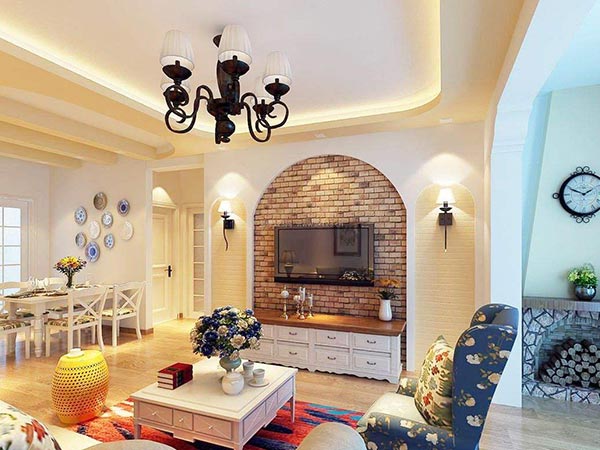 3、影視墻並不是單獨存在的,大家在裝飾影視墻的時候還應留意它與局部吊頂相協調。現在很多都會在吊頂上面安裝燈飾,因此大家要考慮考慮墻面造型與燈光相呼應,照明燈的顏色和強度也應該留意,不要運用瓦數過大或顏色太耀眼的燈泡,這樣在觀影時才不會有雙眼刺痛或眩暈的感覺。