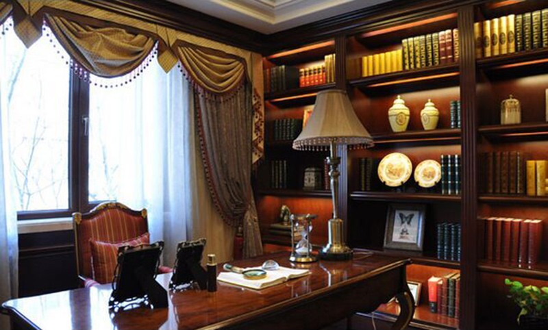 搭配TIPS:老年人視力不好,在強光下閱讀會十分吃力,應該書房應該加裝遮光能力比較好的窗簾。