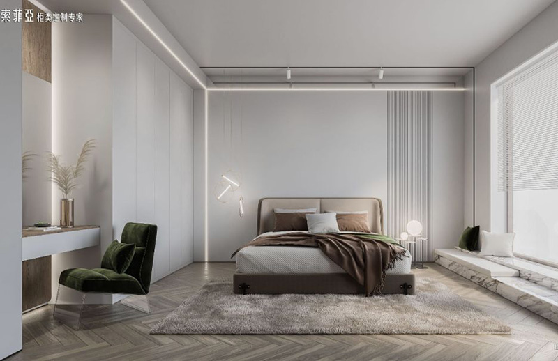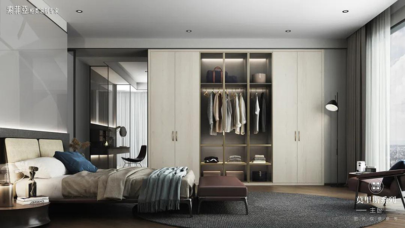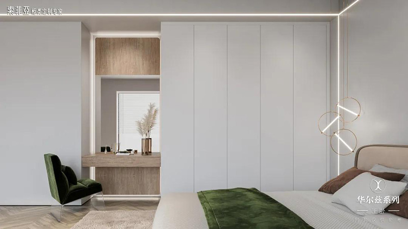 臻灰、巖灰、臻白三大主選花色,一門到頂的大面積純色使用,突出現代簡約柔和的質感。