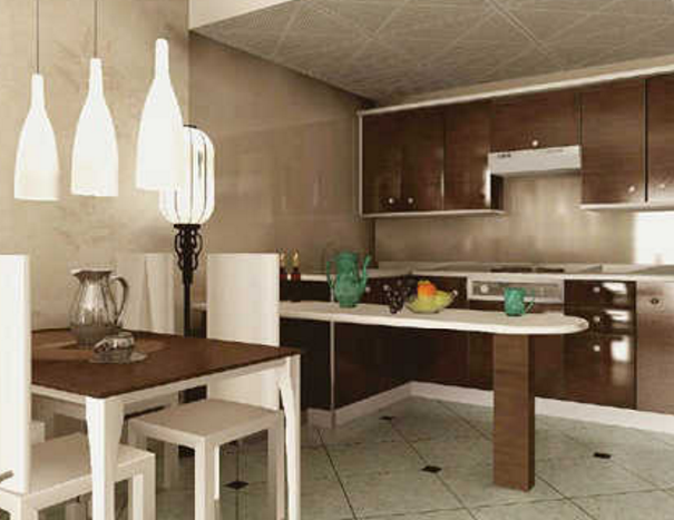 1、增加空間感。采用開放式的,中間無隔斷,廚房同時變成了“廳堂”,立刻顯得寬敞明亮,更具有現代時尚;