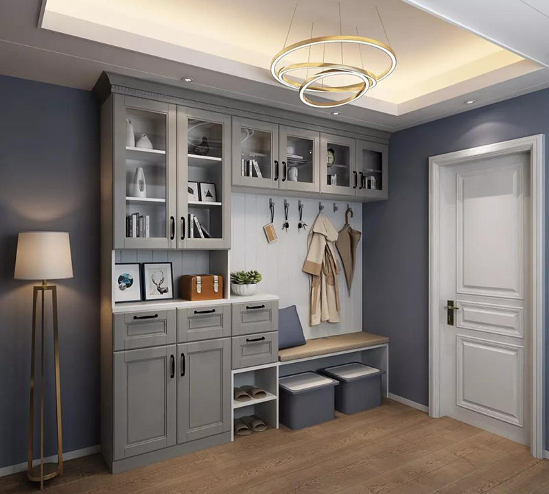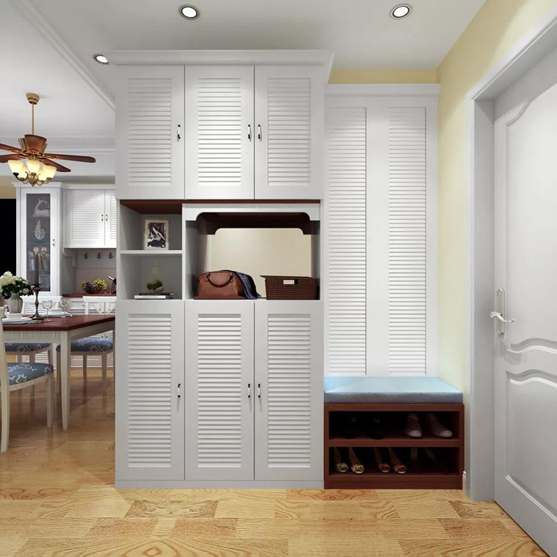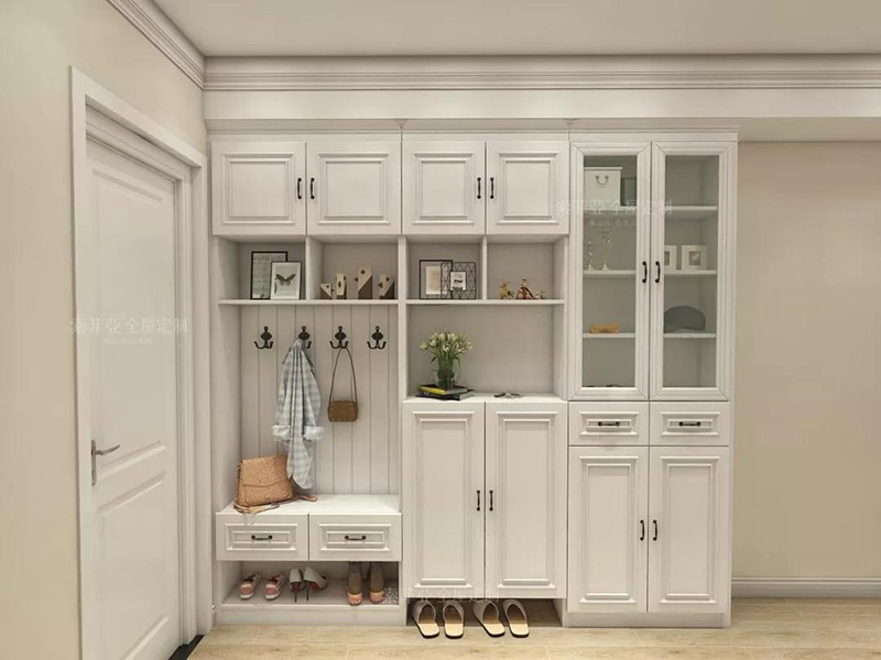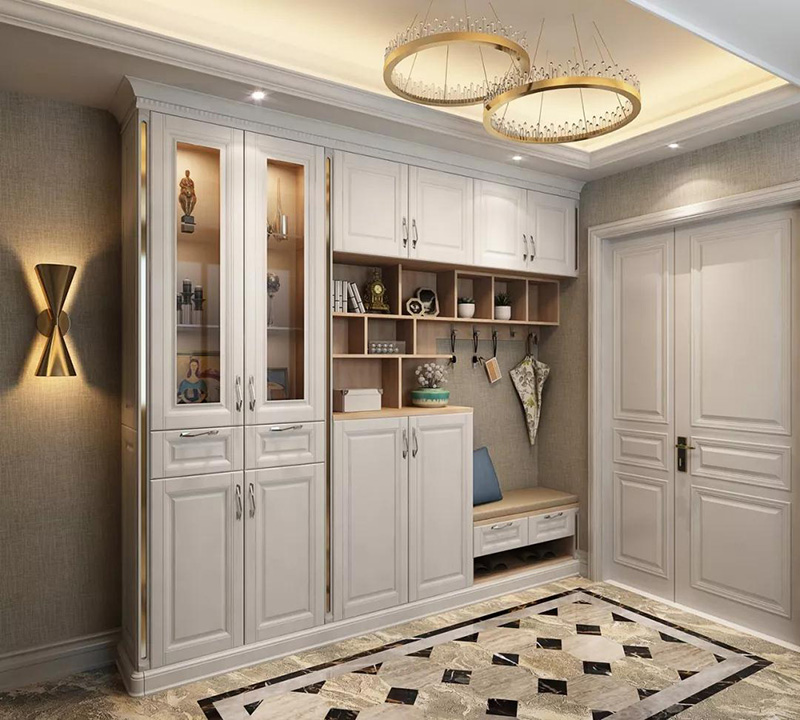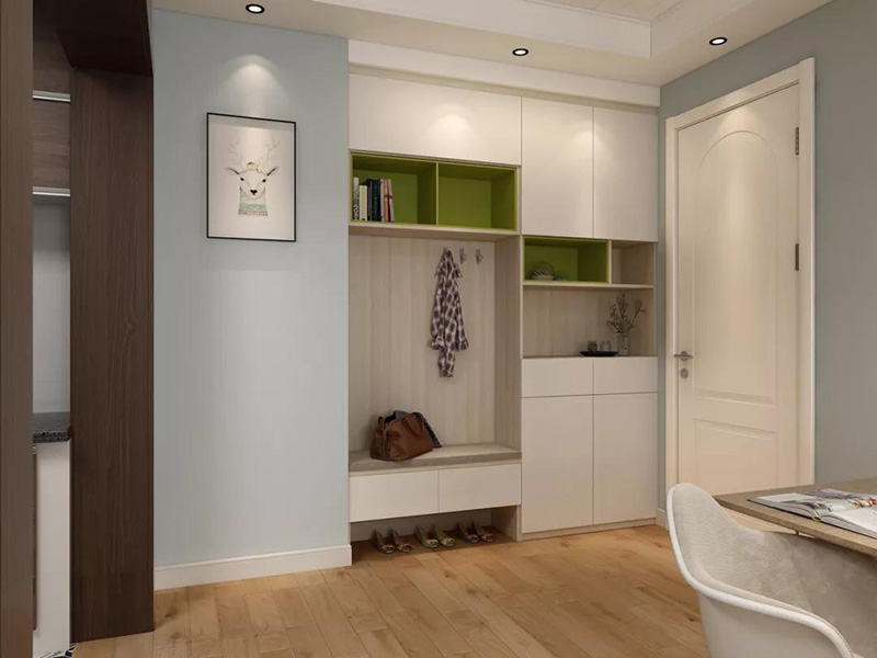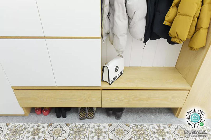 家有老人,換鞋凳設計非常必要。如果沒有個換鞋凳,每次換鞋都搬個凳子或者把鞋子拿到客廳去穿,既麻煩又不衛生。讓老人家下蹲就更不行了,萬一起不來怎麼辦,所以,鞋櫃設計時,千萬別忘了留個換鞋位。