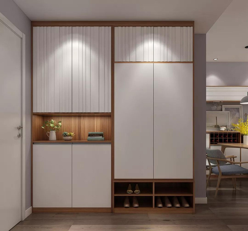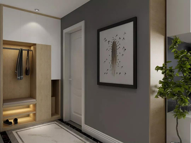 不想每天彎腰放鞋,入戶櫃底部務必要留出10-20cm的懸空區域,換鞋的時候,一腳把拖鞋踢進去,不用彎腰放鞋,晚上回家換鞋也很方便。