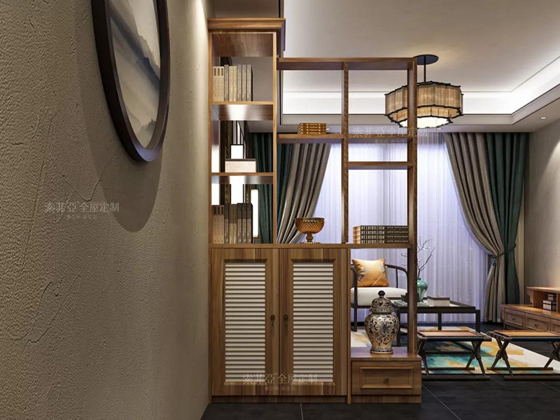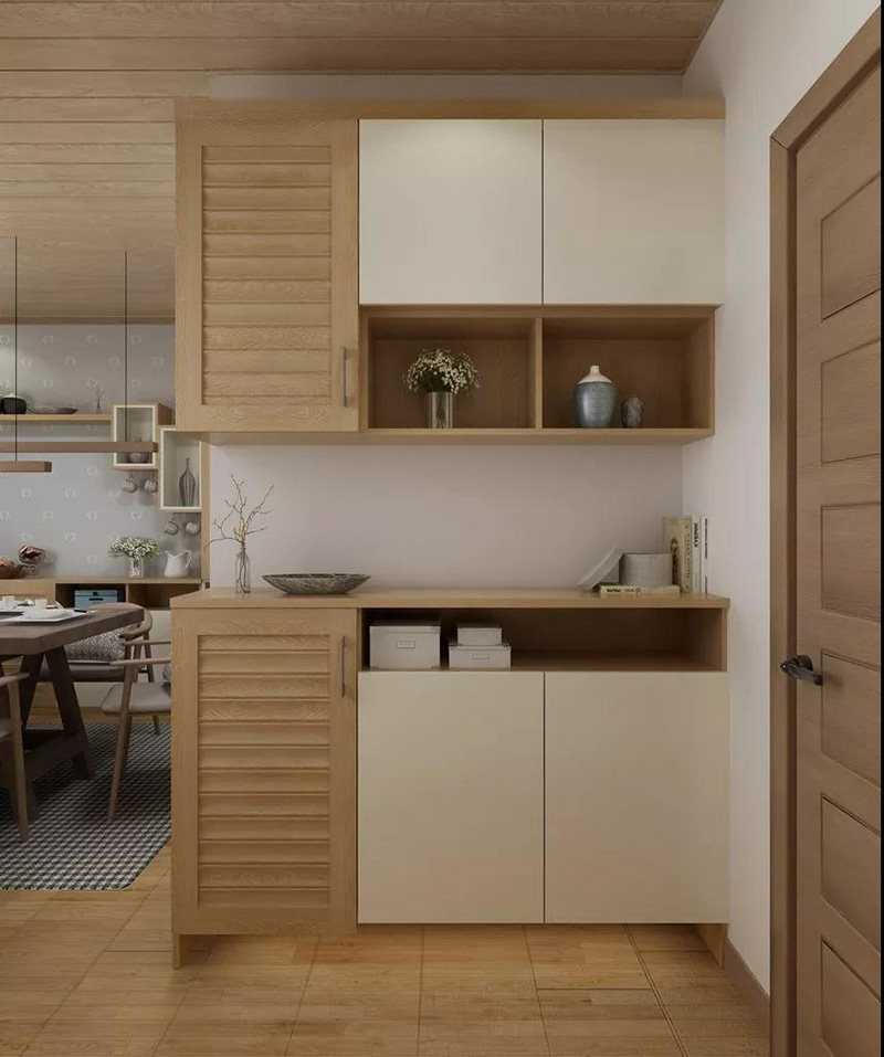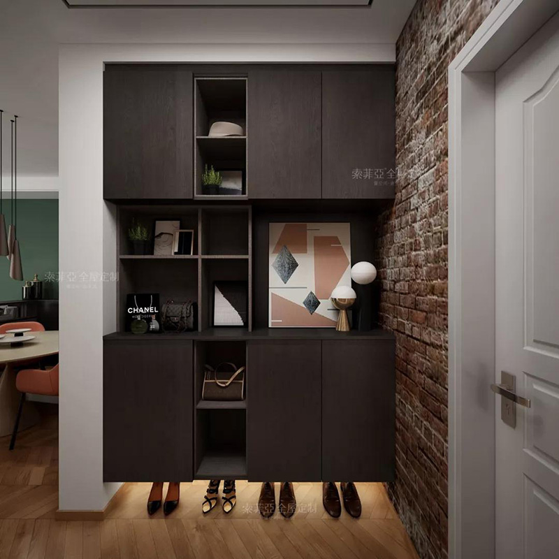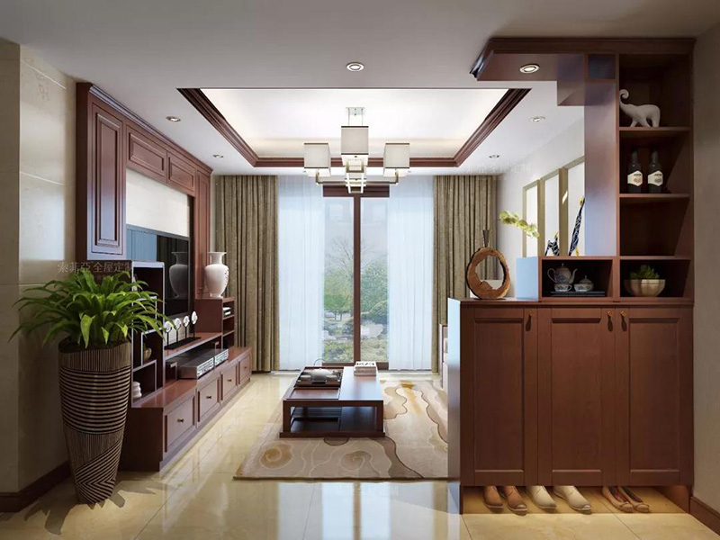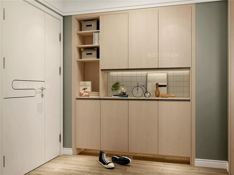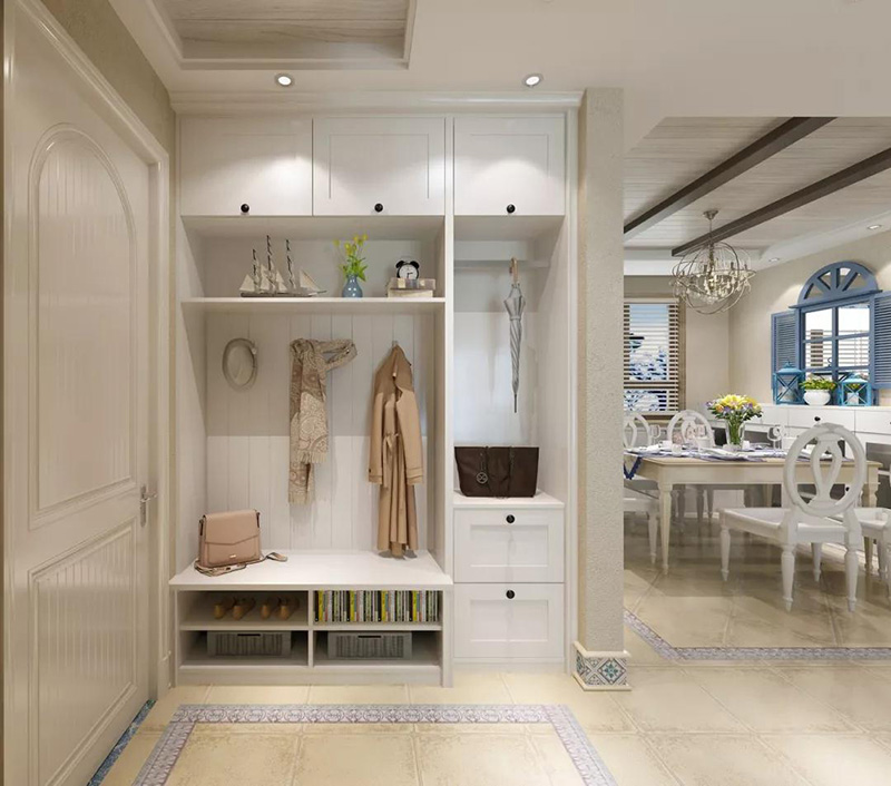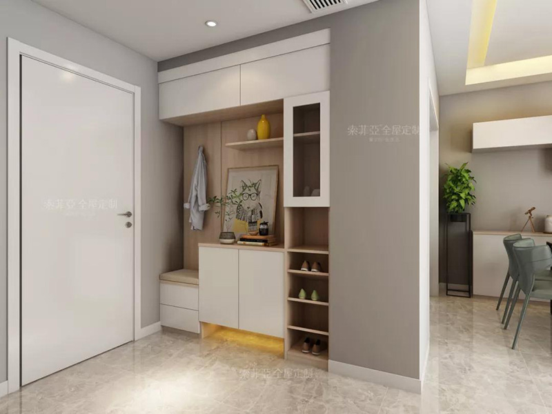 針對進門就是客餐廳,沒有玄關的戶型,想要對室內空間進行劃分,砌墻既擋光線又占空間,不如客製化一個玄關櫃,開放區域保證了陽光的通透性,也讓你進門方便換鞋。