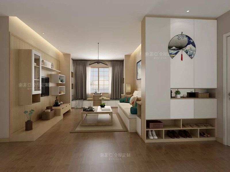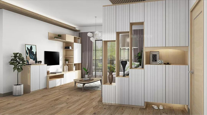 不喜歡鏤空式隔斷的,做成整櫃式隔斷,對于光線較好的戶型來說,超級實用!