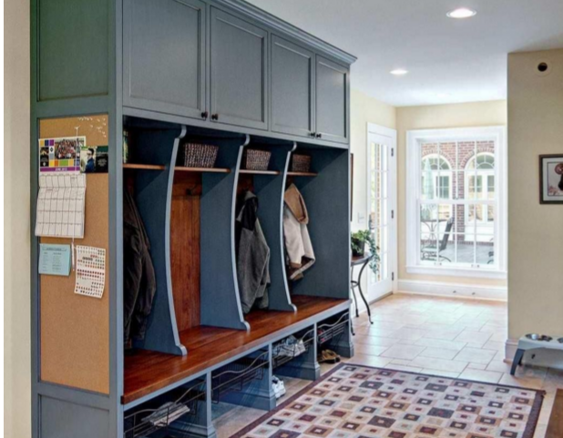 入戶門廳裝潢設計3、這款門廳的設計實用性非常的強,即可作為休閑聊天的區域,又能作為強大的收納區。大片窗戶的設計,給空間帶來了充足的陽光,櫥櫃旁方形的長椅可躺可坐,儼然一個小型會客廳。