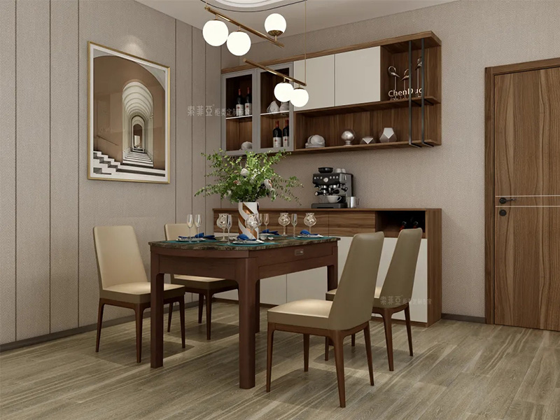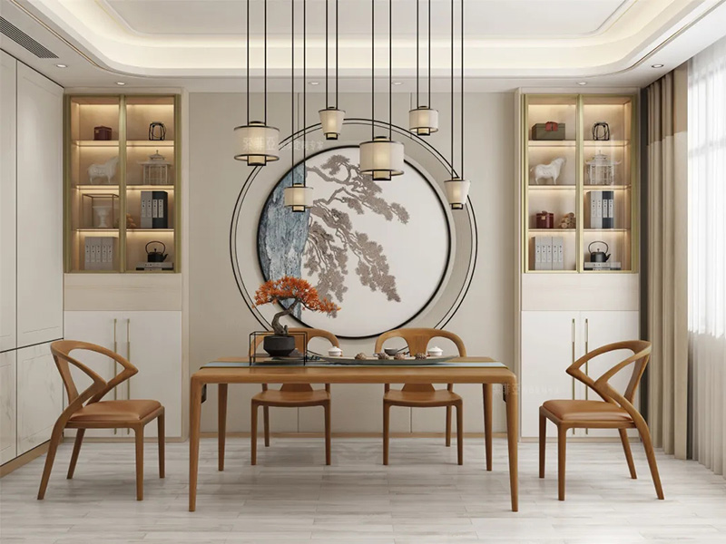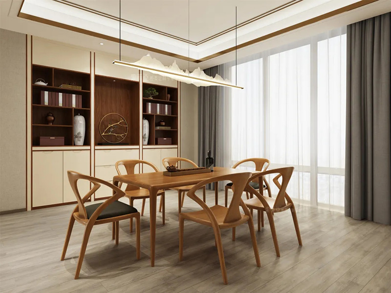 在新中式風格家裝中添置實木餐桌,可大大提升整個空間的韻味。