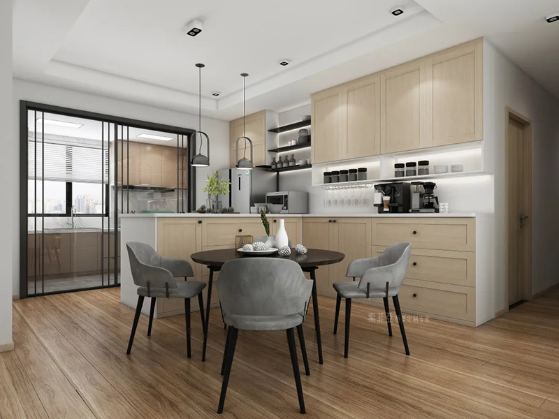 因此,想要吃飯坐得舒服,除了考慮餐桌本身的大小,餐桌周圍的活動空間記得要留足。有餐邊櫃安裝需求的朋友,別忘了把櫃子本身的深度也考慮入內(餐邊櫃的常規深度是450mm,要在臺面放家電的建議做到550mm以上)。