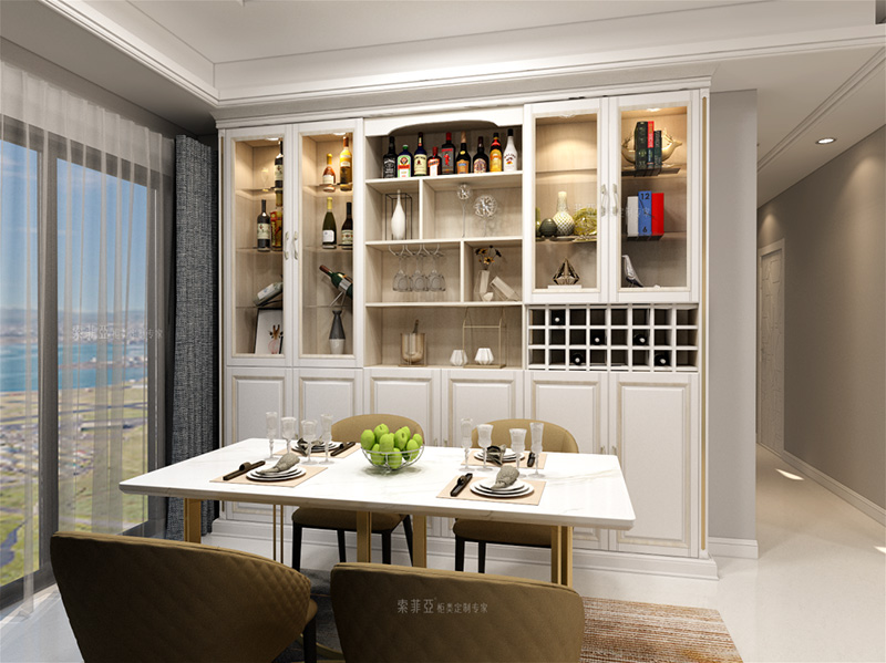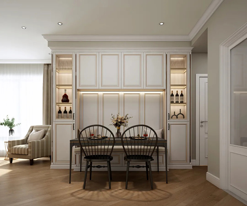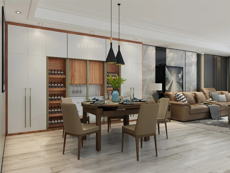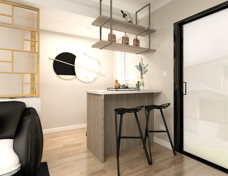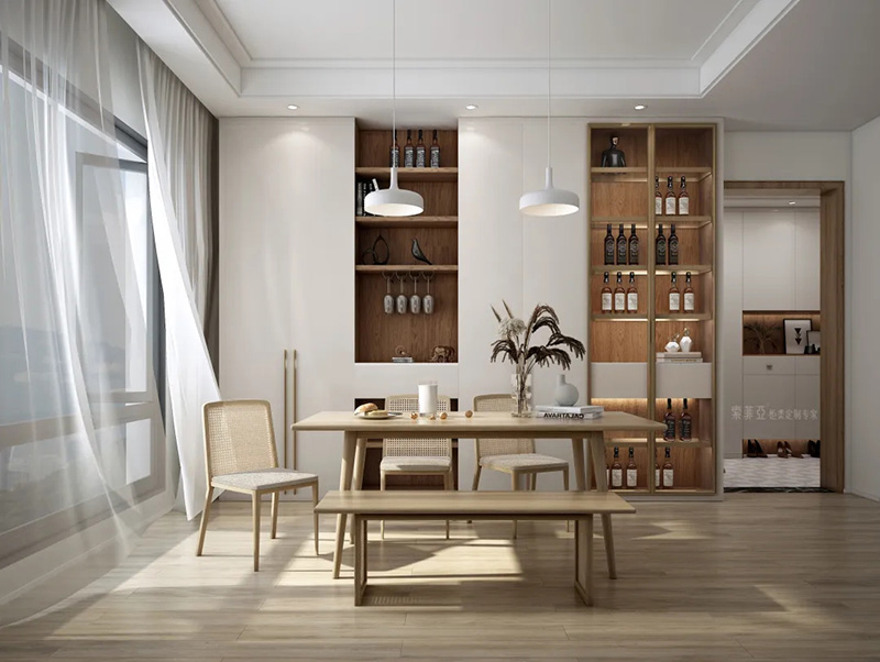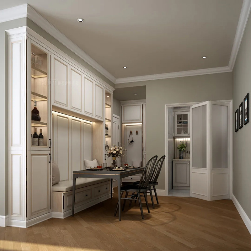 卡座+餐邊櫃一體客製化,不僅不占地,還可大大增強儲物功能。
