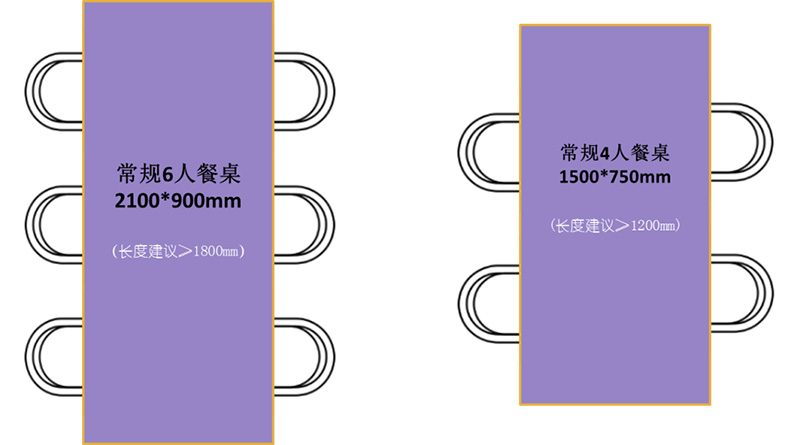 通常我們會在四人餐桌和六人餐桌中選其一,常規尺寸如下: