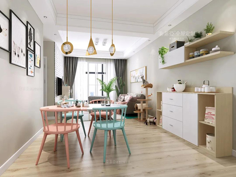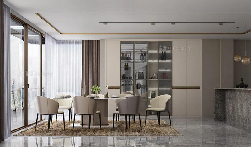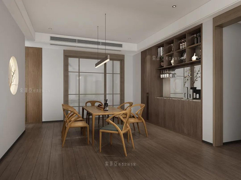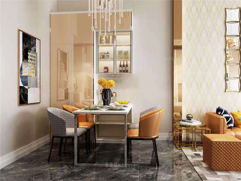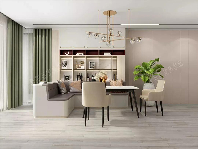 客餐廳一體,希望中間有隔斷,餐邊櫃就能起到隔斷的作用。怕空間顯得壓抑,一般使用矮櫃餐邊櫃來當隔斷。
