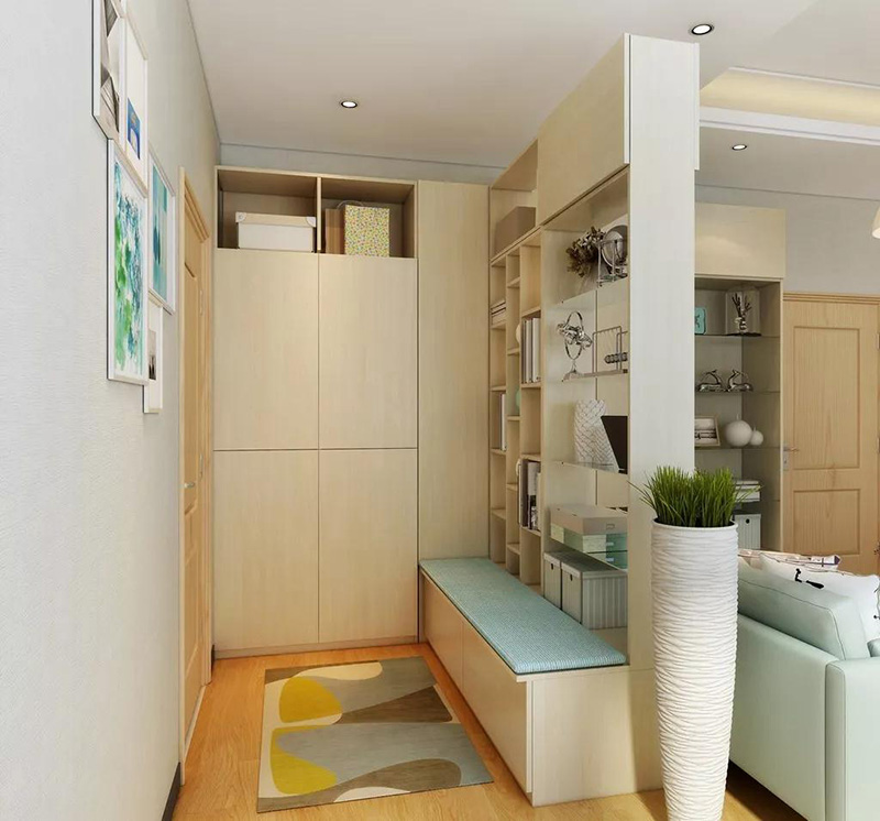 或者卡座+入戶櫃結合,既能坐人,又能隔斷儲物,非常實用。