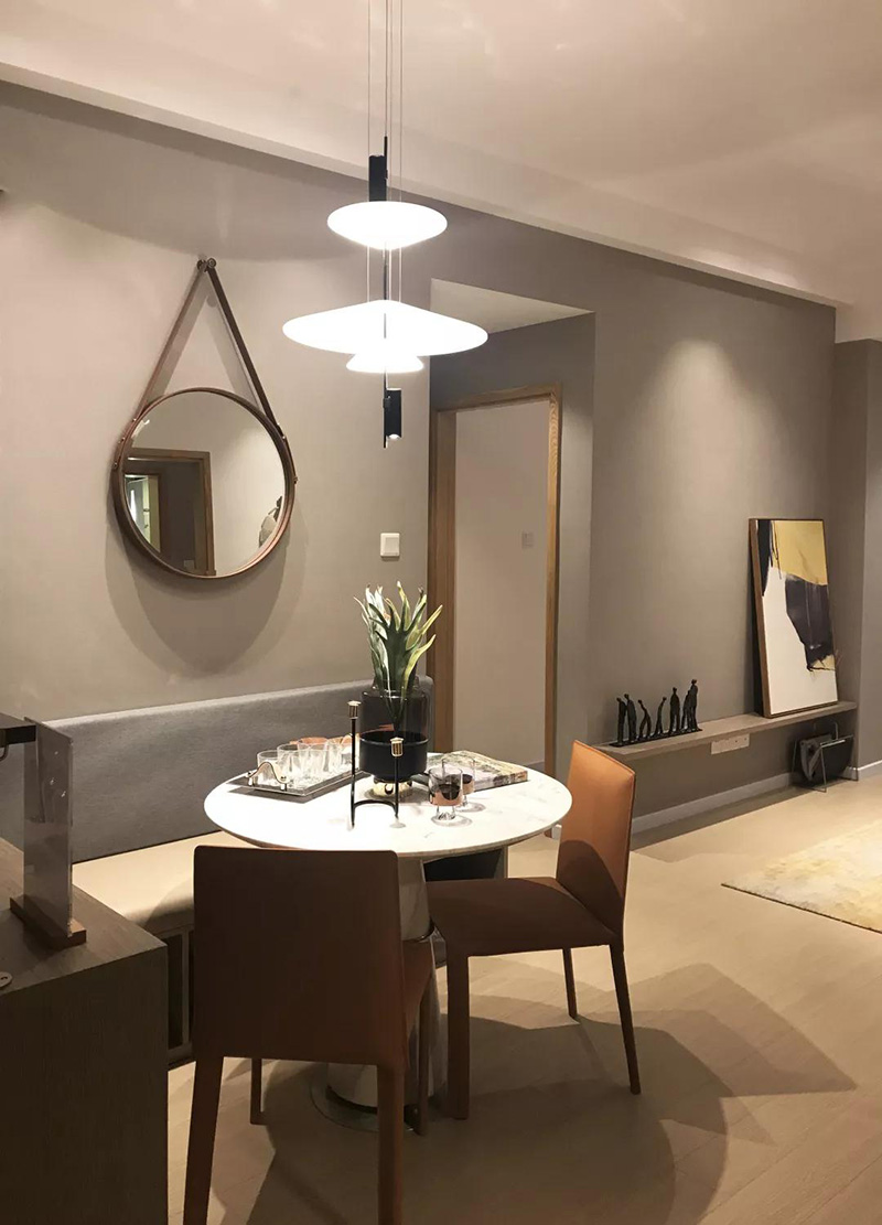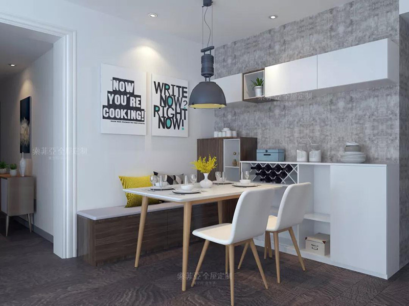適用于餐廳非常小,無法擺放下常規餐桌椅的家庭,能大大節省過道空間。