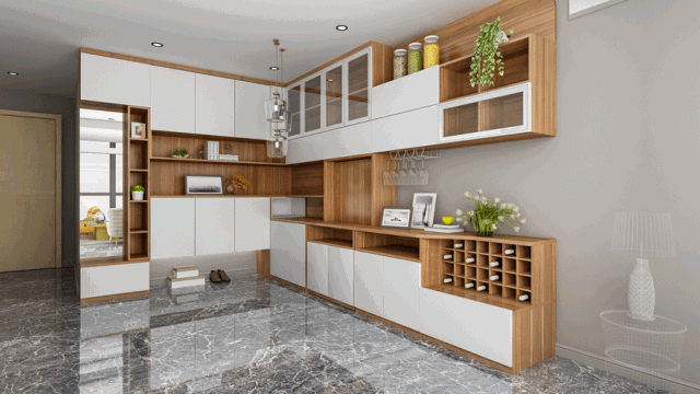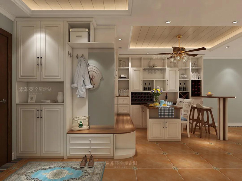 如果覺得始終接受不了餐廚空間打通之后的油煙問題,我們不妨將目光轉移到同樣和餐廳空間比鄰的入戶上。
