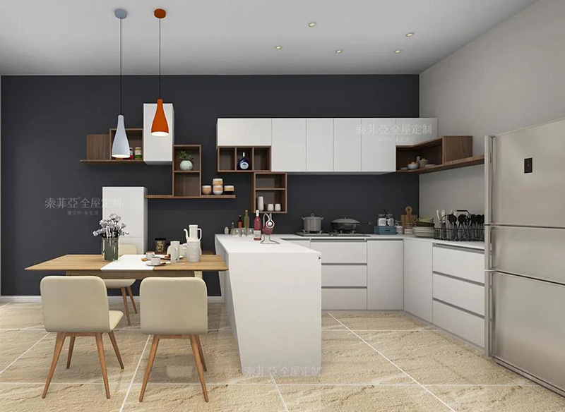 而餐廳布局,除了可以從客廳下手,廚房也是一個很好的選擇。
