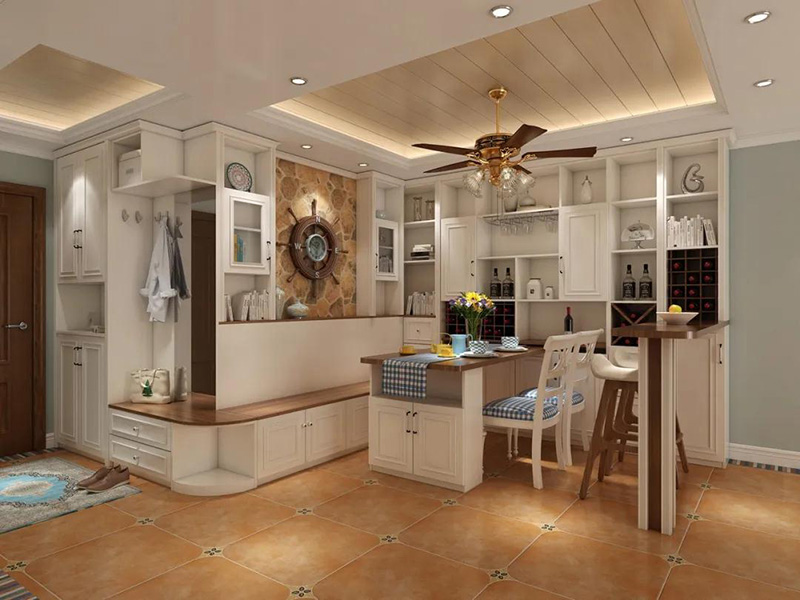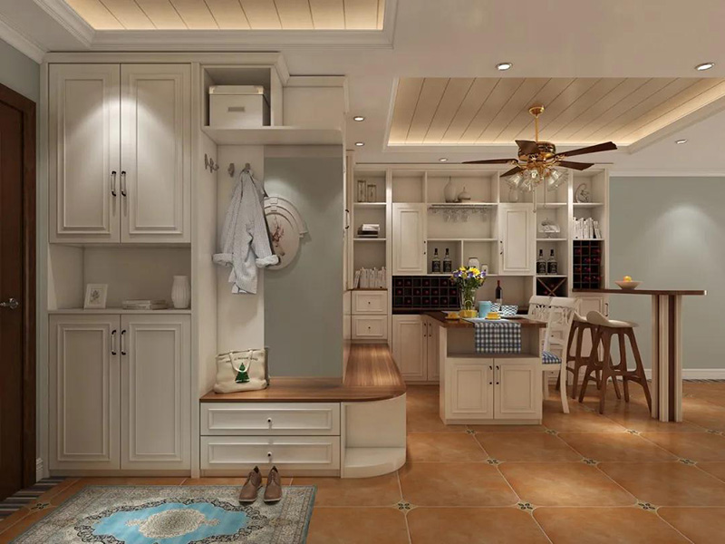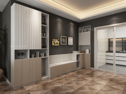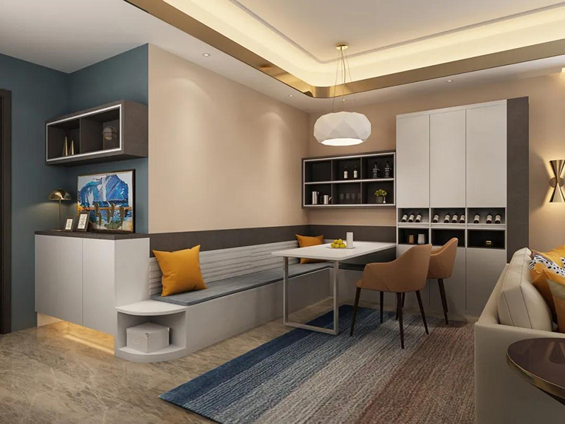 如空間允許,還能打造王者組合——入戶櫃+卡座+餐邊櫃。
