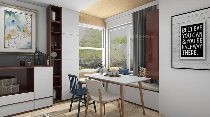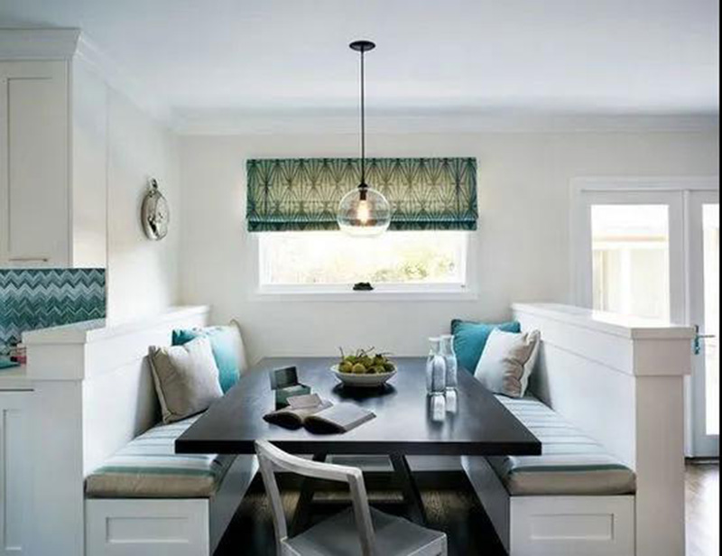 也可以效仿飄窗,在窗邊設置卡座,讓窗外風景盡收眼底~