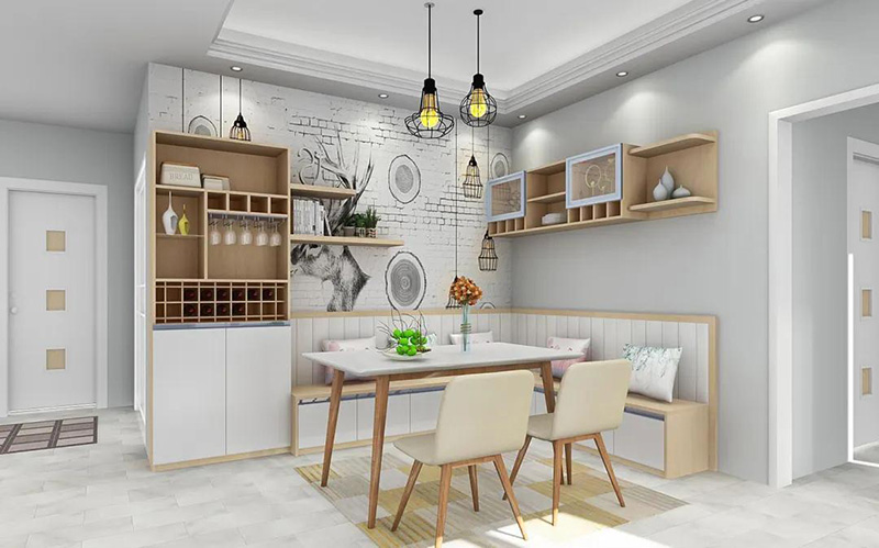 適用于餐廳非常小,無法擺放下常規餐桌椅的家庭,能大大節省過道空間。