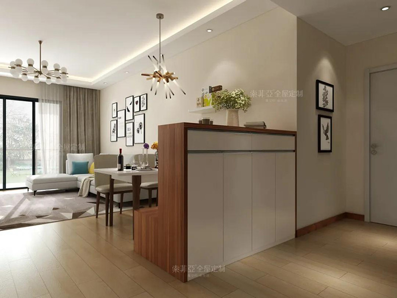 或者卡座+入戶櫃結合,既能坐人,又能隔斷儲物,非常實用。