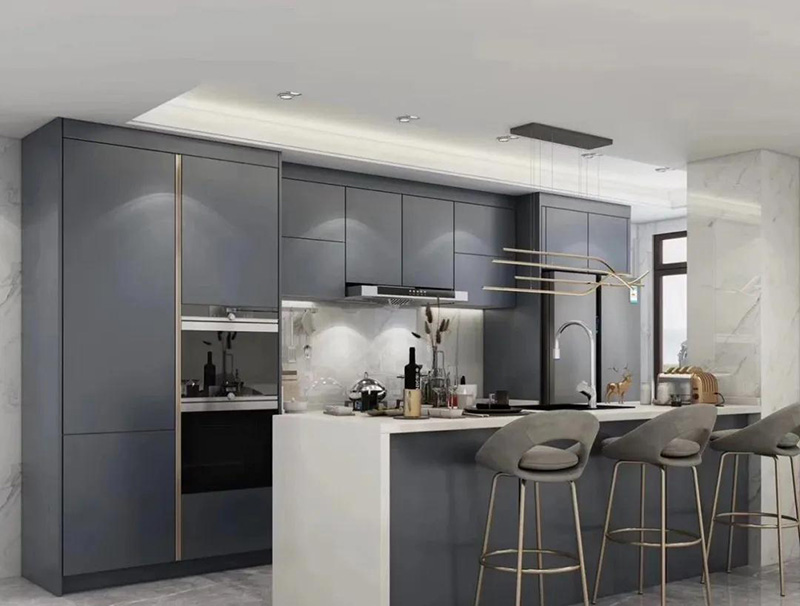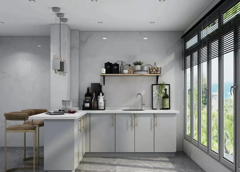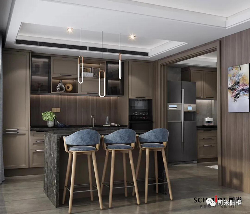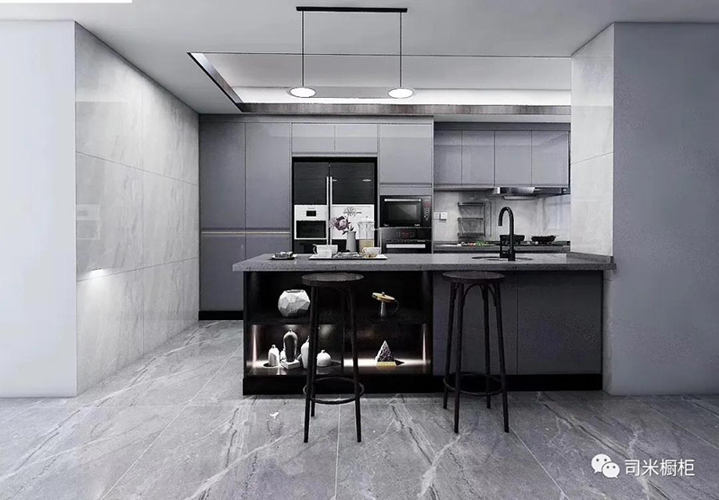 帶吧臺開放式廚房一體化設計,吧臺可以有多種實用功能,最大限度的為我們廚房增加額外空間,吧臺可以當做延長座,或準備食物的操作臺,還可以作為酒吧臺。