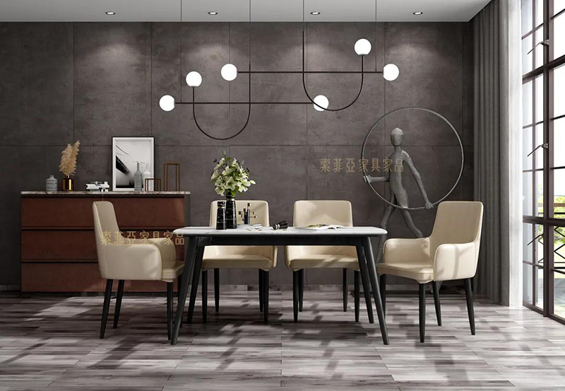 在極簡家居空間里,色調單純多以黑白灰為主。朗丁餐桌椅以黑白為主的配色、簡單大氣的造型設計與極簡空間設計理念相契合。