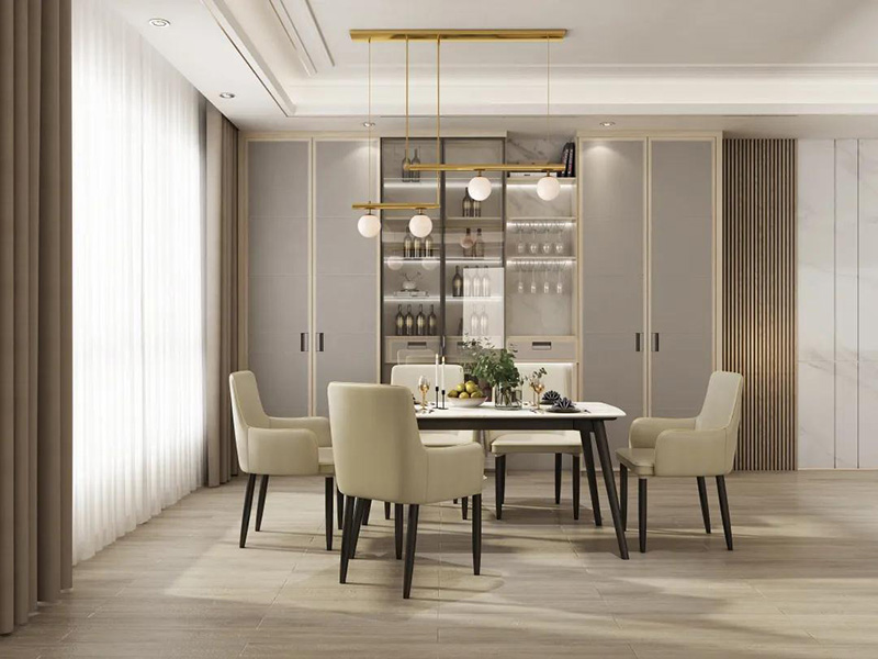 方形餐桌的外形輪廓可以很好的契合家中的房子形狀,適用于不同的房型,充分利用餐廳空間,尤其適合中小戶型。