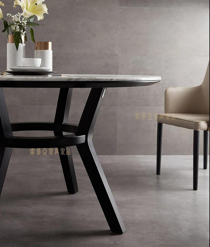 外八內圓框架設計,造型別致同時又能增強餐桌承重性,詮釋意式極簡家居美學。