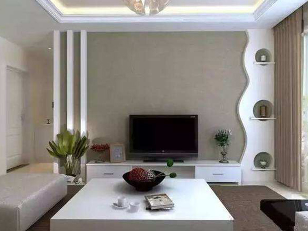 2、善于搭配小裝飾品 電視背景墻的設計可以適當搭配一些小裝飾品,為其增添亮眼。我們可以放一些相框在電視櫃的裝飾格上,還有將一些雕塑品擺放在電視櫃上。如果我們想要營造客廳浪漫的氣氛,我們可以將一些小燈飾設計在電視背景墻上。