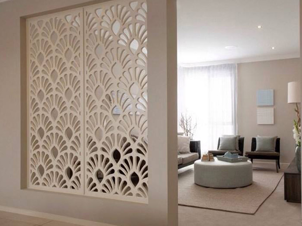 如果家里裝潢的是偏向復古風的話,不妨可以考慮使用雕花風格的玄關隔斷,它和屏風比較相似,即能阻隔視線,又能起到很好的裝飾效果。