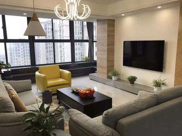 電視背景墻上的燈光布置也特別重要,最好采用局部照明,燈光不能太亮,在柔和,而且燈光不能直射在電視上,還要與客廳內的吊燈相搭。