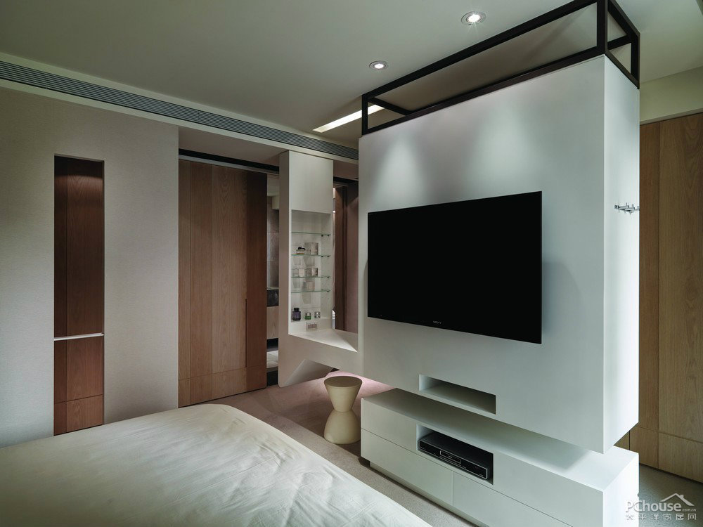 現代風格電視墻在設計上融入了流行的創意元素,引入自然光線,提升了空間明亮度。在電視墻中還故意設計了中心區域玄空,這樣可以彌補空間的不良布局,還能達到放大坪數的效果。
