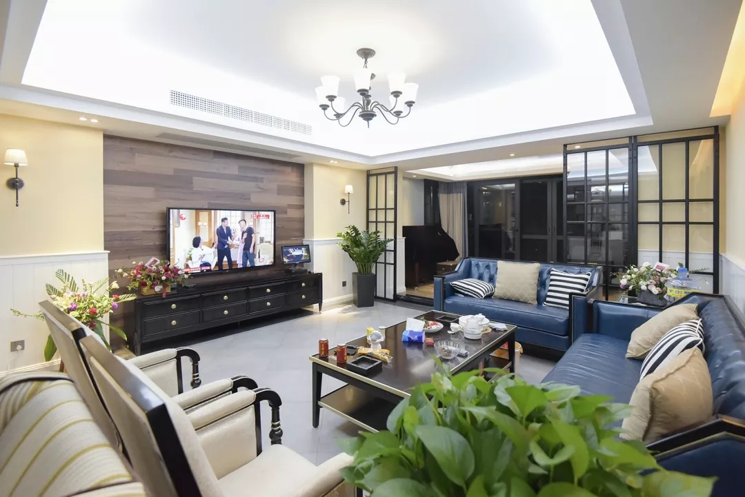 這套藏青色的美式皮質沙發是@洪哥的心愛之物,不得不說,這樣的質感,正是美式情調獨有的。