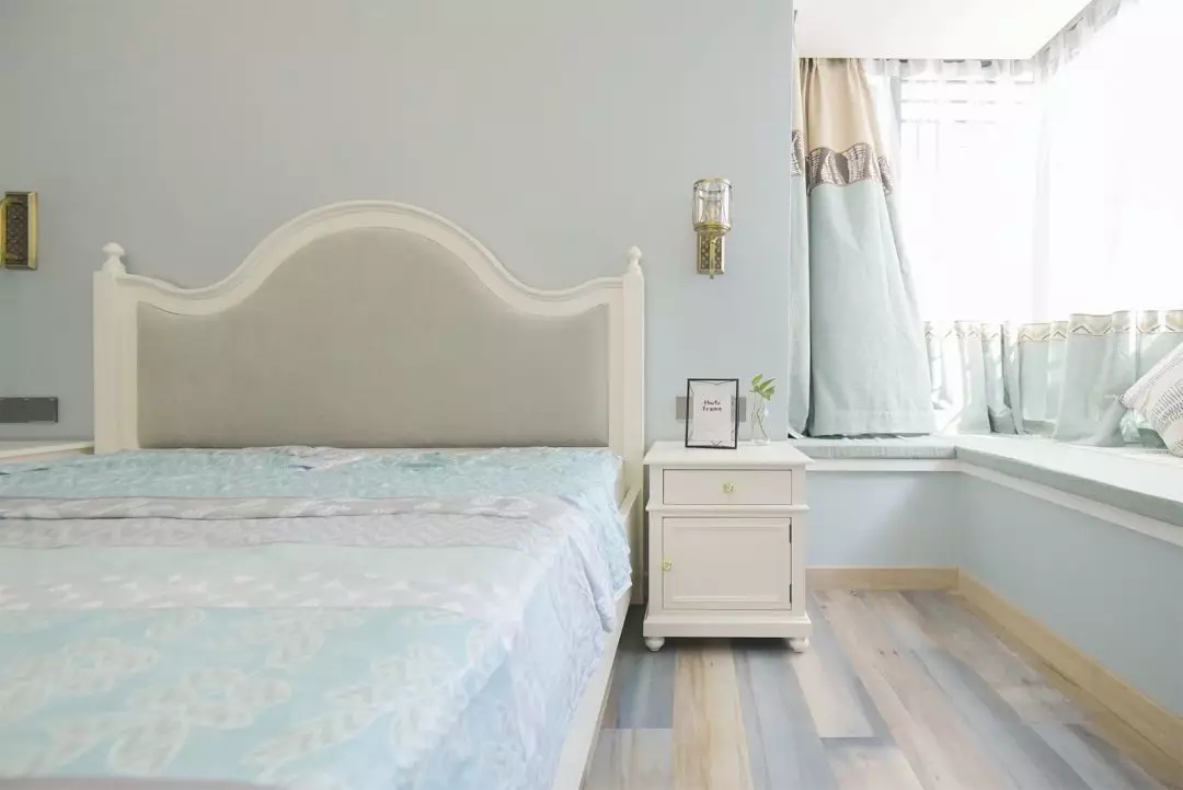 值得一提的是,主臥的軟裝配色和地板的淡彩色搭配,引起極度舒適了!