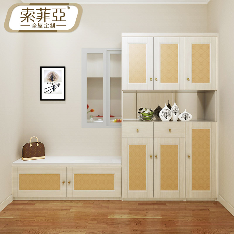 整體白色外觀,簡約清新;帶門櫃、開放櫃、換鞋凳分區合理,簡潔明快,使用起來更為便捷!