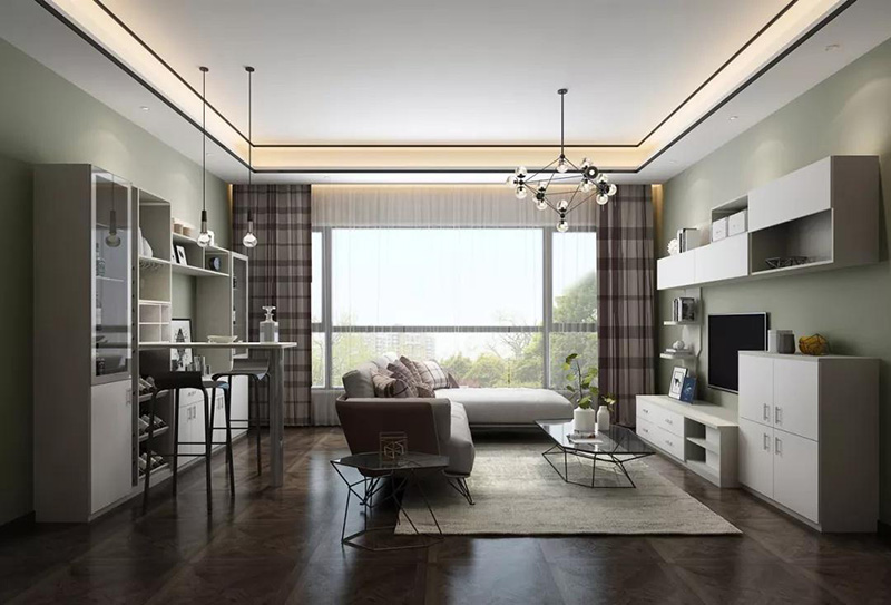 這種布局在小戶型里可以節省空間,增加活動范圍,同時讓客廳顯得井井有條不擁擠。