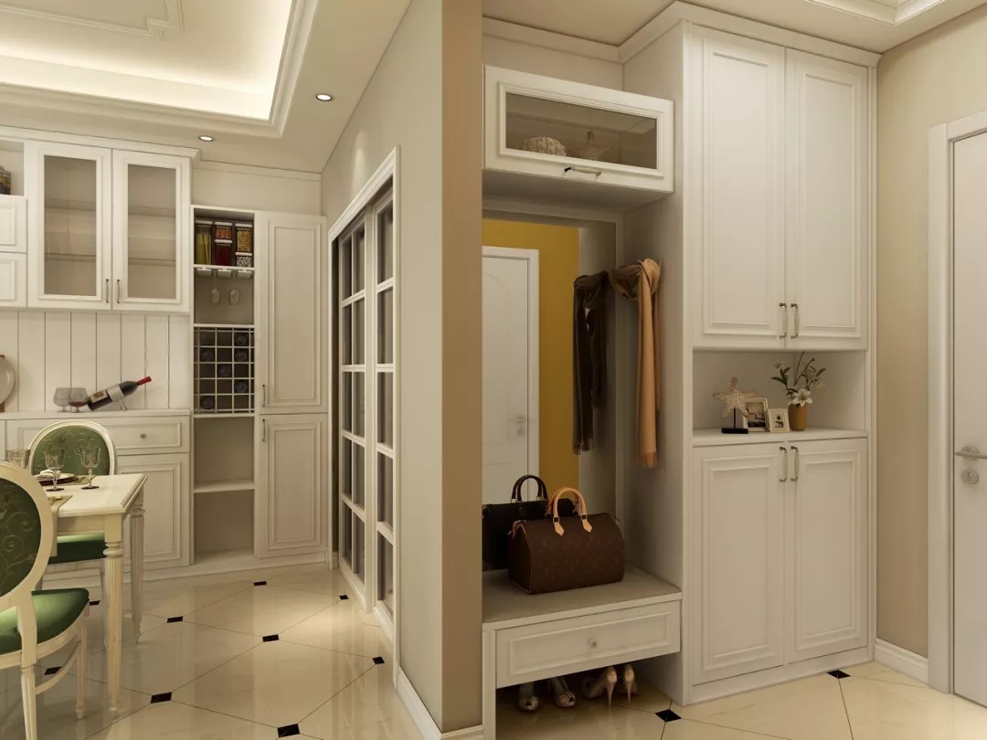 鞋櫃太高顯壓抑,太矮鞋子不夠裝,一般鞋櫃高度可設在齊腰處或稍高一點,縱深為35cm左右。但如果入戶的空間很淺,那就得考慮選擇側放式的鞋櫃了。