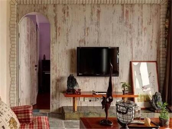 創意滿滿的電視背景墻搭配一個拱形的隱形房間門,房間門和電視背景墻刷刷上相同的漆色,或者是貼上一樣的壁紙,就不會影響電視背景墻的整體感。