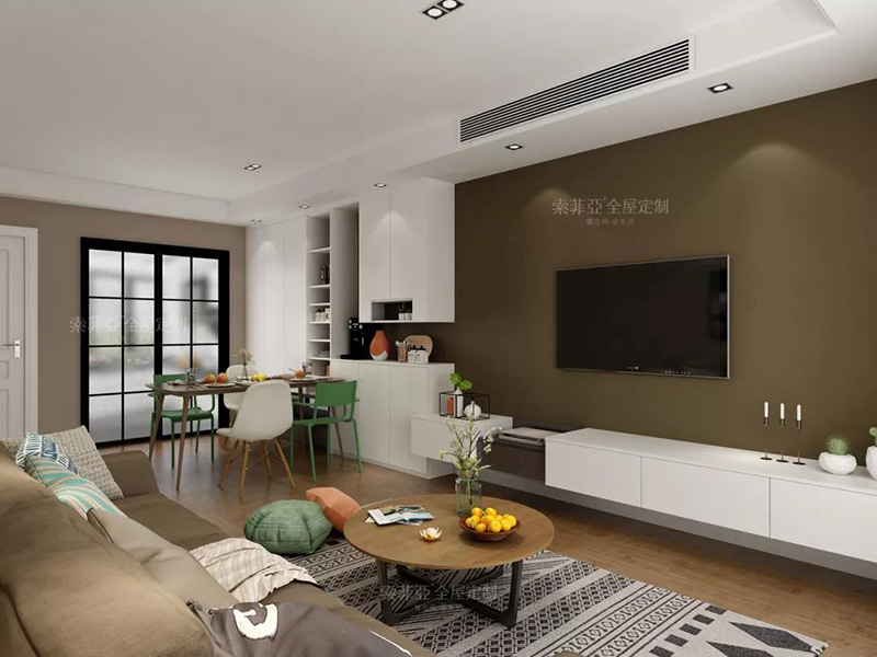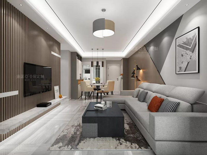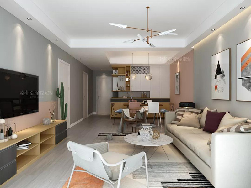 對于很多戶型來說,客餐廳雖為同一空間,但中間是被臥室通道隔開的,這種格局應怎麼設計客餐廳?