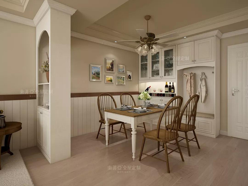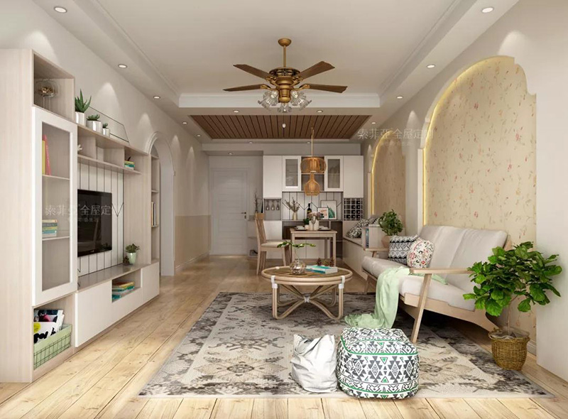例如在墻面上做兩個拱形設計,這樣看過去,客餐廳就自然而然獨立起來了,還有一種淡淡的異域情調呢~