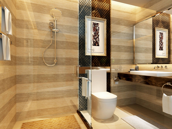 2、選擇瓷磚的時候還要考慮到瓷磚的種類,衛生間因為經常濕滑所以要選防滑的瓷磚,而且要根據衛生間的亮度來決定瓷磚的亮度,太亮的就用亞光的瓷磚,而且一般亮色的瓷磚還要注意瓷磚的耐污性。