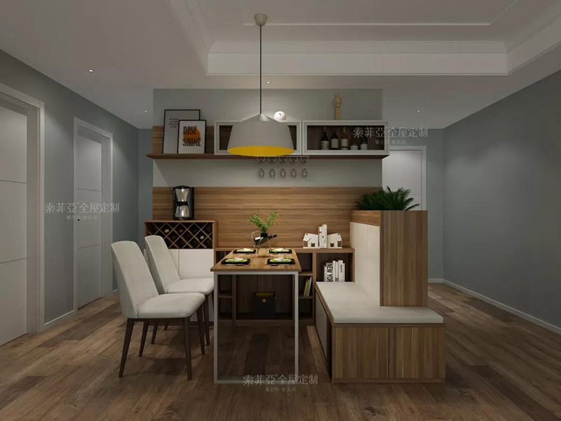 針對餐廳空間很小或異形空間,無法擺下常規的餐桌椅,那客製化卡座就很有必要了,還能解決收納問題。
