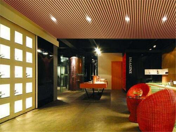 這款生態木吊頂是目前比較流行的一種吊頂裝飾,在價格上會比普通吊頂更加昂貴些,從外觀看上去非常有時尚潮流感,非常符合追求原始自然的質感,而且裝飾起來呈現的視覺感也非常獨特。