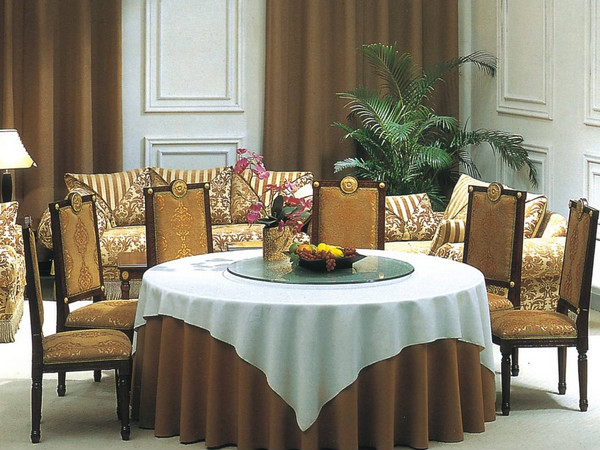 3、一張供六個人使用的桌子擺起居室里要占3000*3000mm的面積,需要為直徑1200mm的桌子留出空地,同時還要為在桌子四周就餐的人留出活動空間。這個方案適合于那種大客廳,面積至少達到6000*3500。