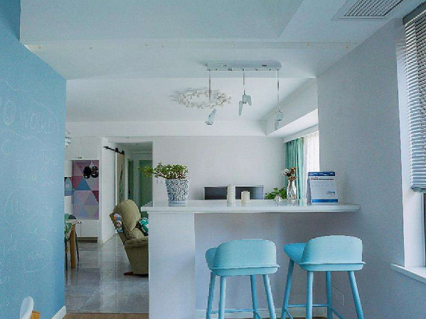 地中海風格的吧臺設計很受年輕人的喜愛,它看起來很清新、活力。地中海風吧臺摻入了海洋元素,讓我們在家中都能感受到海風的咸味,非常悠閑。這就是典型的用來分隔廚房與客廳的吧臺裝飾效果,開放式的廚房日益成為現代的裝扮特色,它會結合吧臺來讓空間變得更加具有層次感,使得客廳和廚房在視覺上有個融合,讓整個空間具有統一性,吧臺可以用作飲酒區之余還是就餐很好的場所。