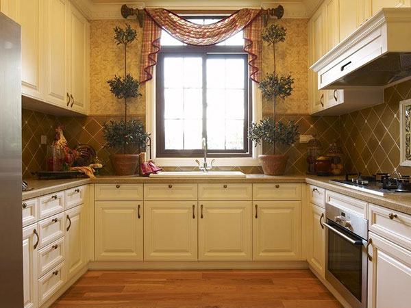 如果想要讓廚房使用起來更加的舒適,就必須保證在10㎡左右,同時還要保證廚房有足夠的採光。如果廚房面積夠大,可放一張小型餐桌,餐桌下可放一塊地毯或花型地磚來劃分空間。如果廚房面積較小,應注意收納問題。