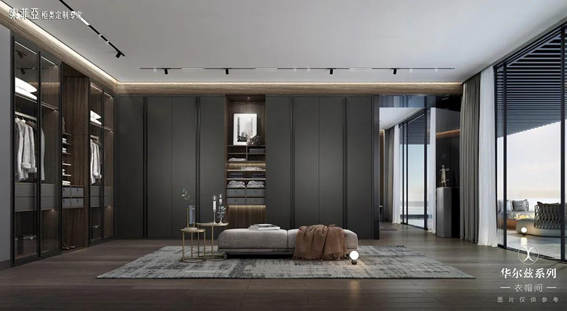 通過鋼板壓貼出具有膚感的表面效果,不但視感柔和,手感柔嫩,巖灰和北美黑胡桃碰撞而來的時尚精致,令人著迷。