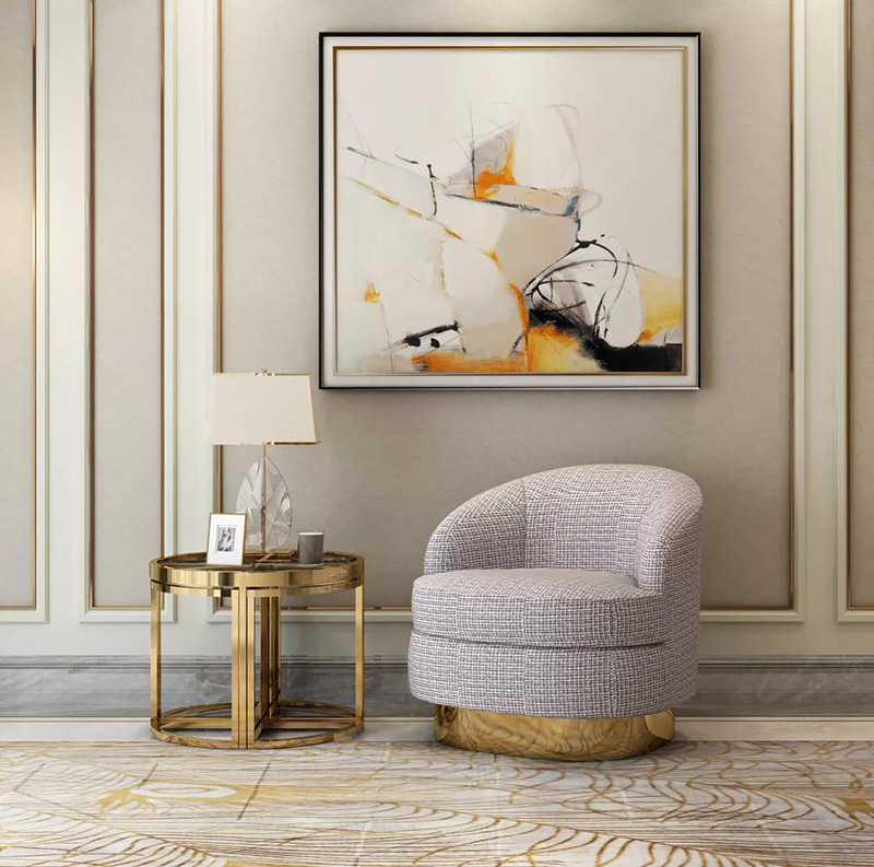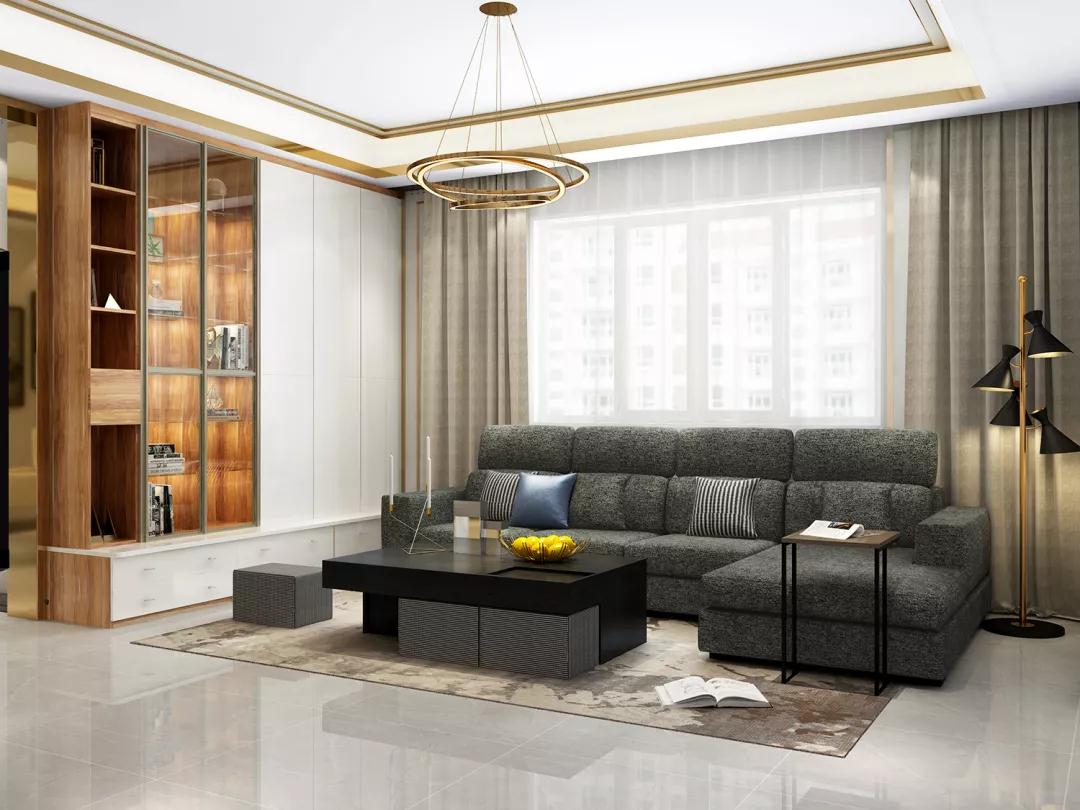 如果覺得黑白配的茶幾太內斂,也可以選擇氣質更張揚的金色金屬與玻璃混搭的茶幾,輕奢高雅,無論是氣質,還是體型,都能與大客廳相匹配。