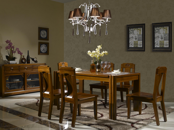 首先說的是木料材質的,同樣適合各類的裝潢格調,按照形狀來分,有圓形、長方形、正方形、多邊形;按實木的種類來分,有紅木餐桌、橡木餐桌、杉樹餐桌等。實木餐桌擁有古色古香的外觀,結實牢固,不足之處在于它易劃傷,不防火,且不易保養。但是因其材質不同存在的優劣也是不一樣的,消費者可根據自己的喜好及經濟條件購買合適的實木餐桌。